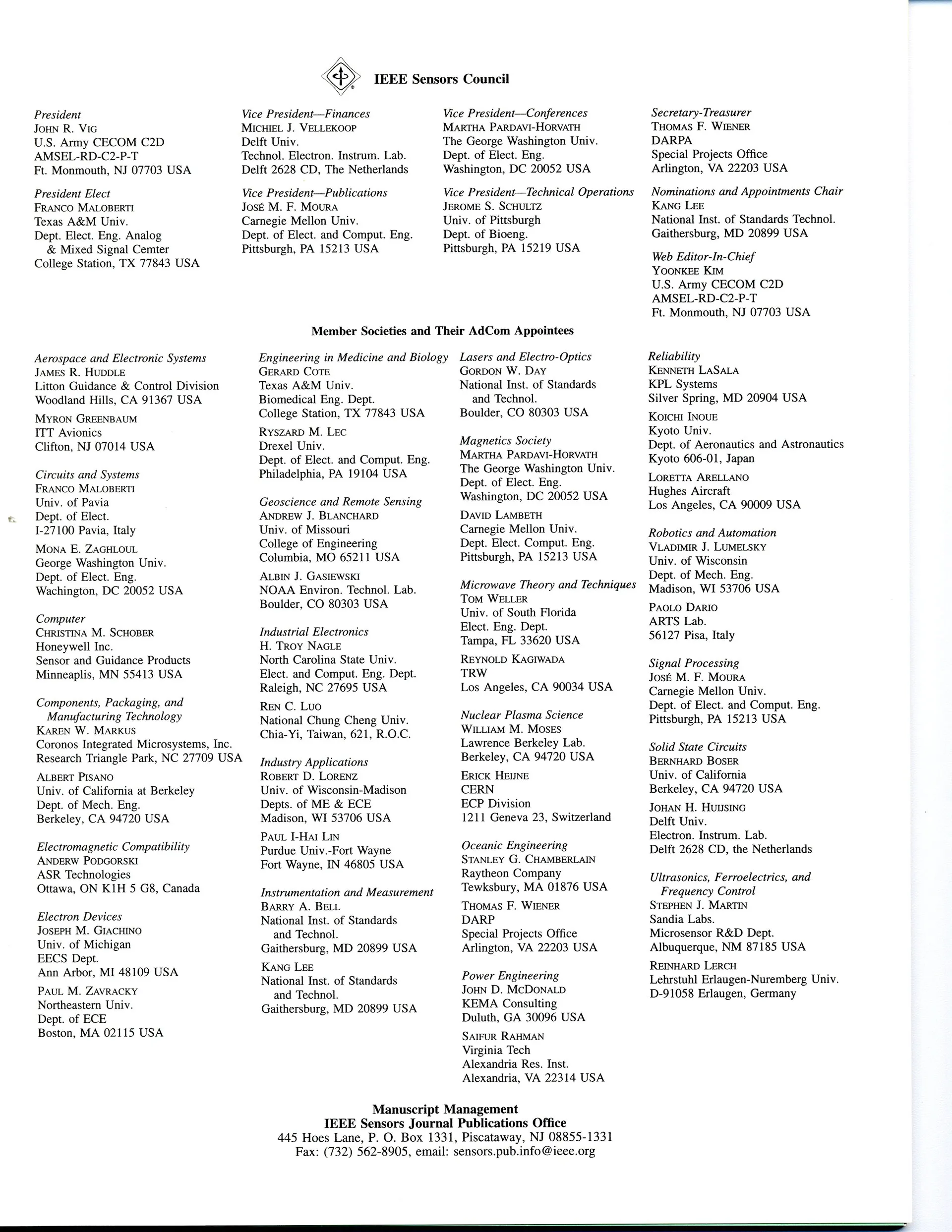 In the year 2000, the year before the first issue of the IEEE Sensors Journal was published, the IEEE Sensors Council rented an exhibit booth at the leading sensor conference at the time, “Transducers,” which was held in Denmark that year. The full name of this conference is International Conference on Solid State Sensors and Actuators (TRANSDUCERS). John Vig staffed the booth with the help of two IEEE volunteers the local section, the Denmark Section, provided.