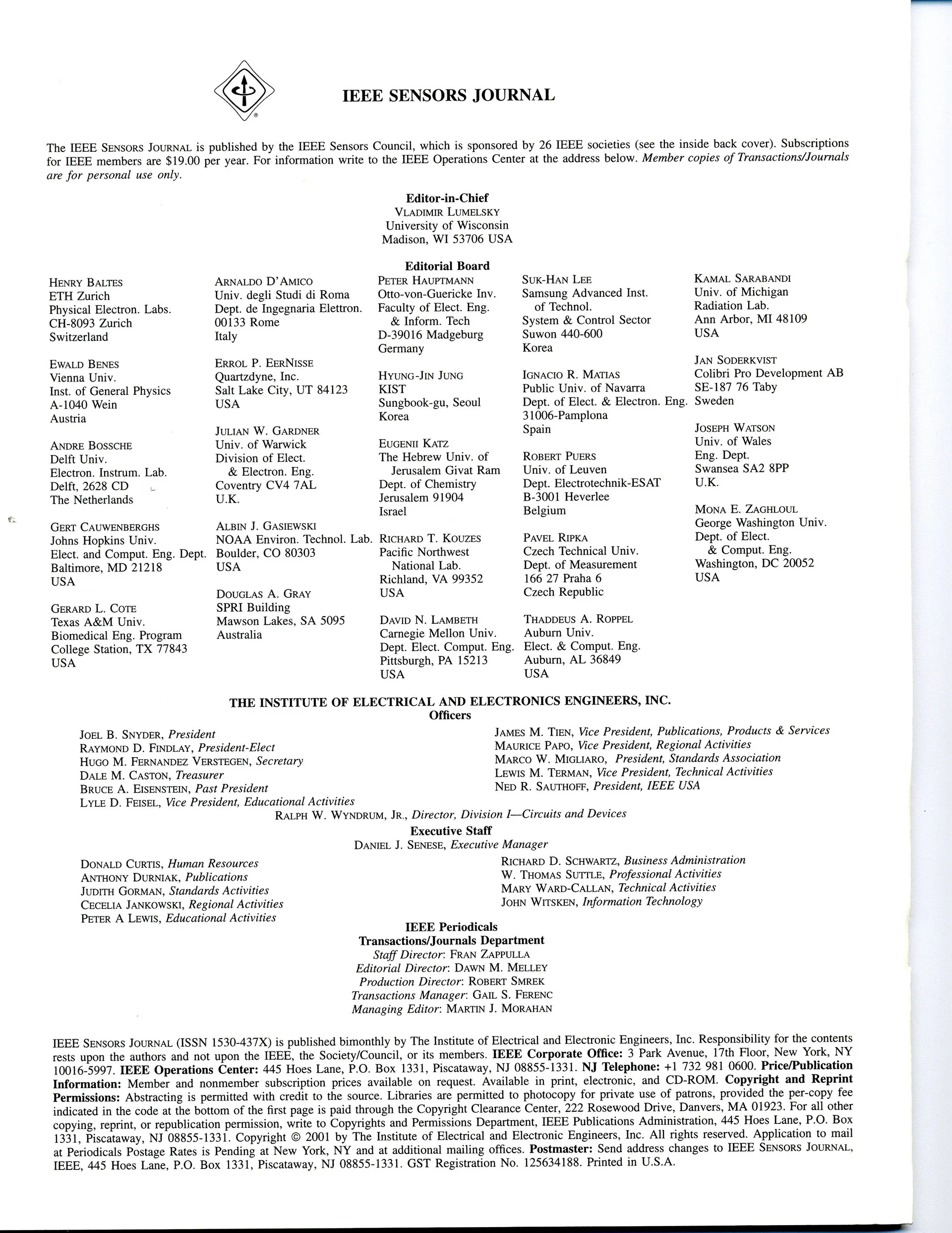 Also exhibiting at this conference was Elsevier, the publisher of the dominant sensor journal in the field at the time, Sensors and Actuators, Parts A and B. The subscription prices of Sensors and Actuators have been in the thousands of dollar range, while the initial price of the IEEE Sensors Journal was USD 19 a year. So, one of the posters in the IEEE booth said “Publish in a journal you can afford.” Photos of the booths may be seen here.